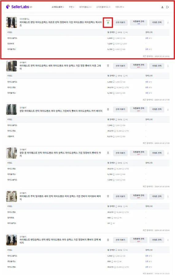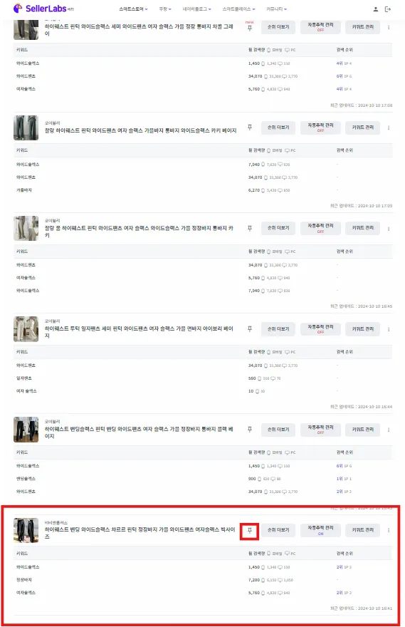 중요한 상품의 순서가 뒤로 밀렸을 때 상단 고정 버튼을 클릭하여 위치를 위로 올릴 수 있습니다.