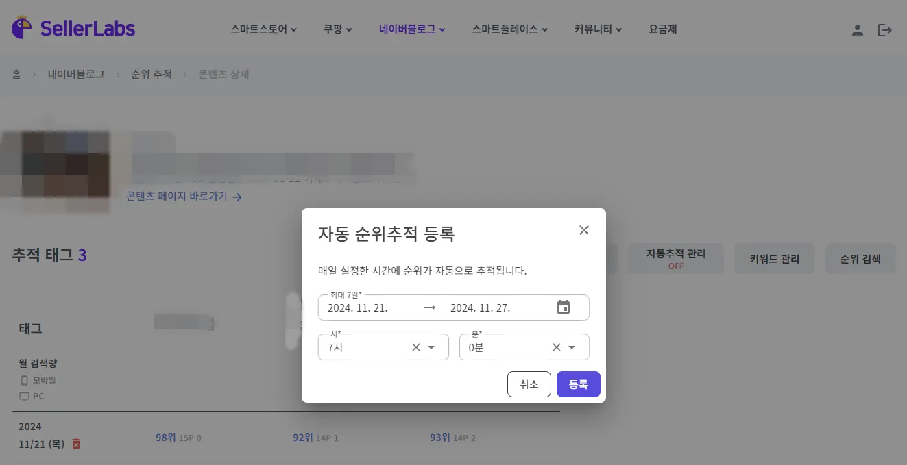 자동 순위 추적은 최대 일주일 기간을 설정할 수 있으며, 현재 베타 기간 동안에는 3개의 글에 한해서만 가능합니다.