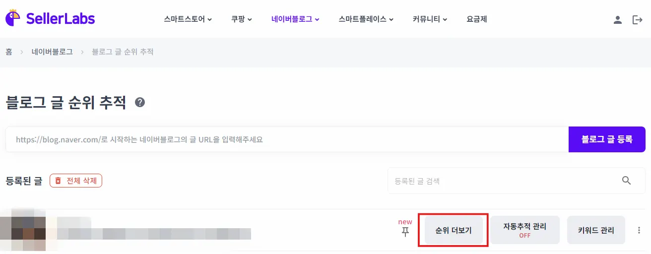 2. 글이 정상적으로 등록되었다면 순위 더보기를 클릭하세요.