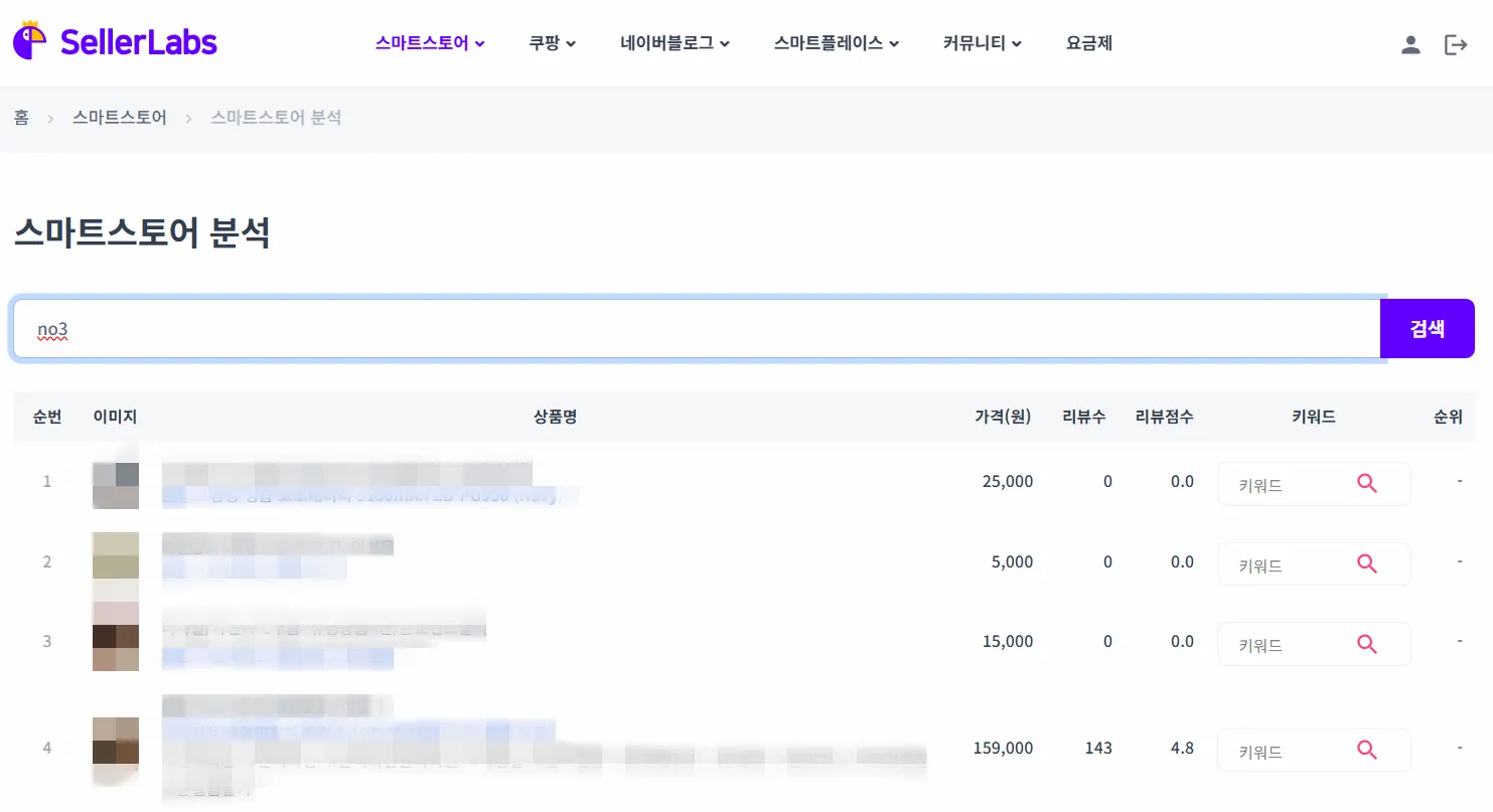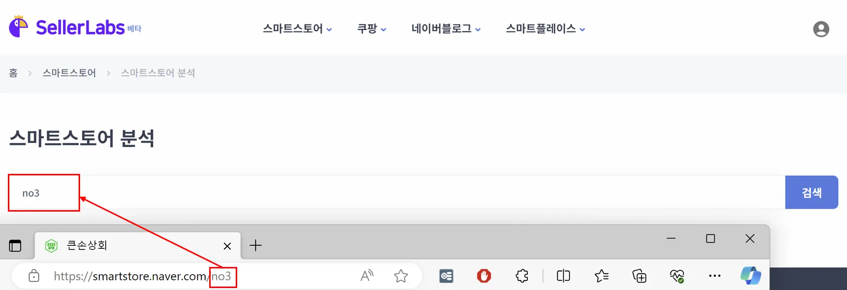 본인의 스마트스토어 뿐만 아니라 다른 스마트스토어의 ID를 입력해도 조회할 수 있습니다.